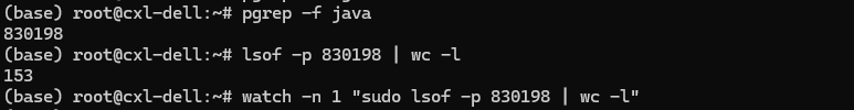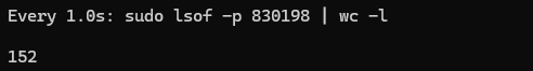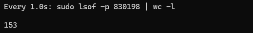 watch -n 1 "sudo lsof -p 830198 | wc -l"