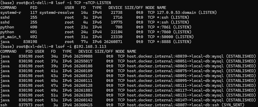于是面试结束后的我痛定思痛,查阅了一番资料之后,终于明白面试官想考的是啥命令了:lsof